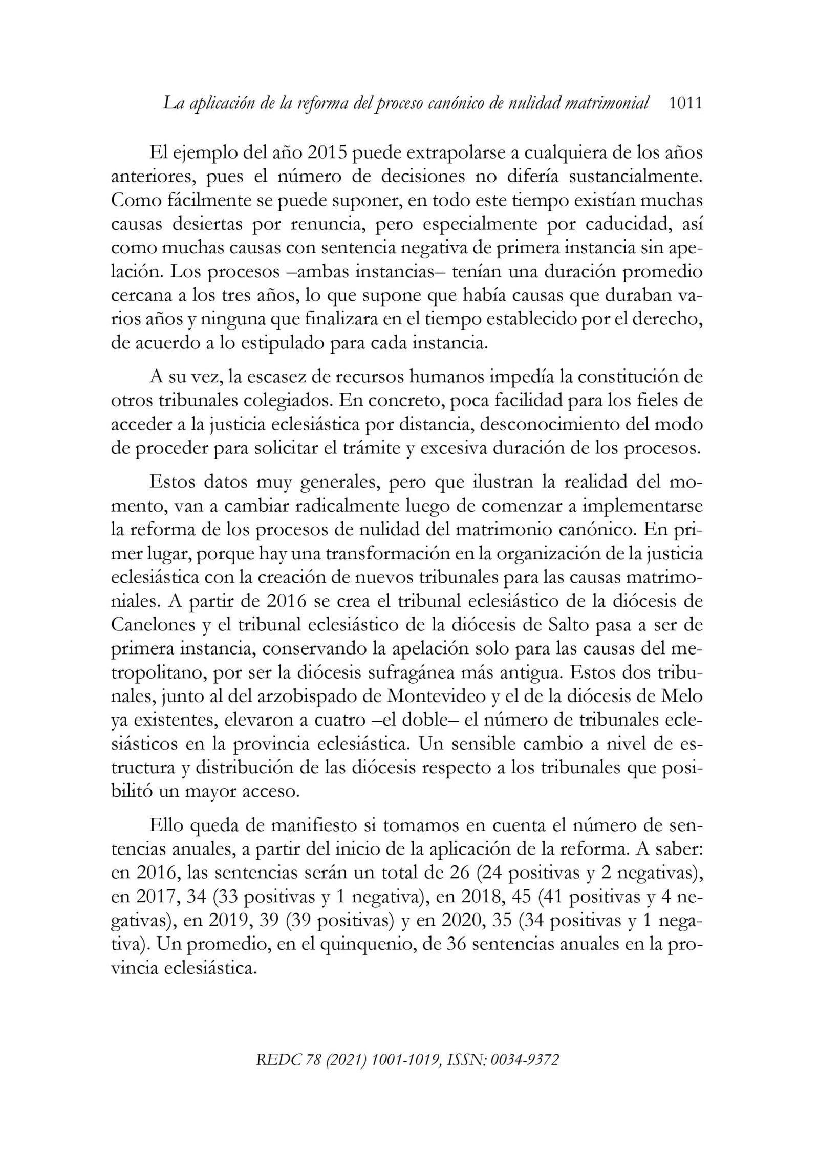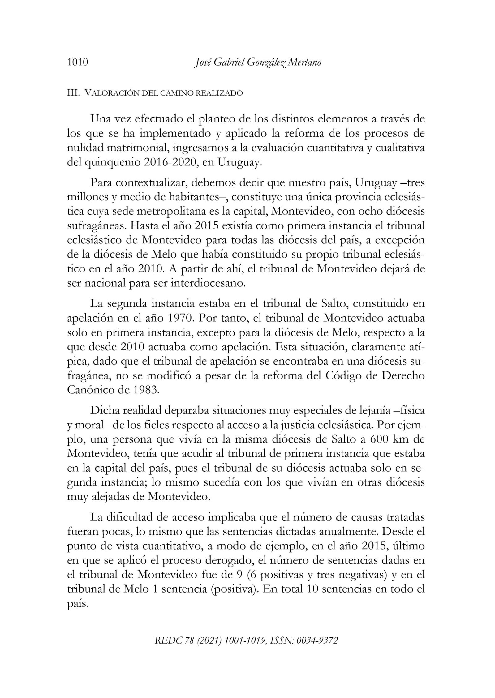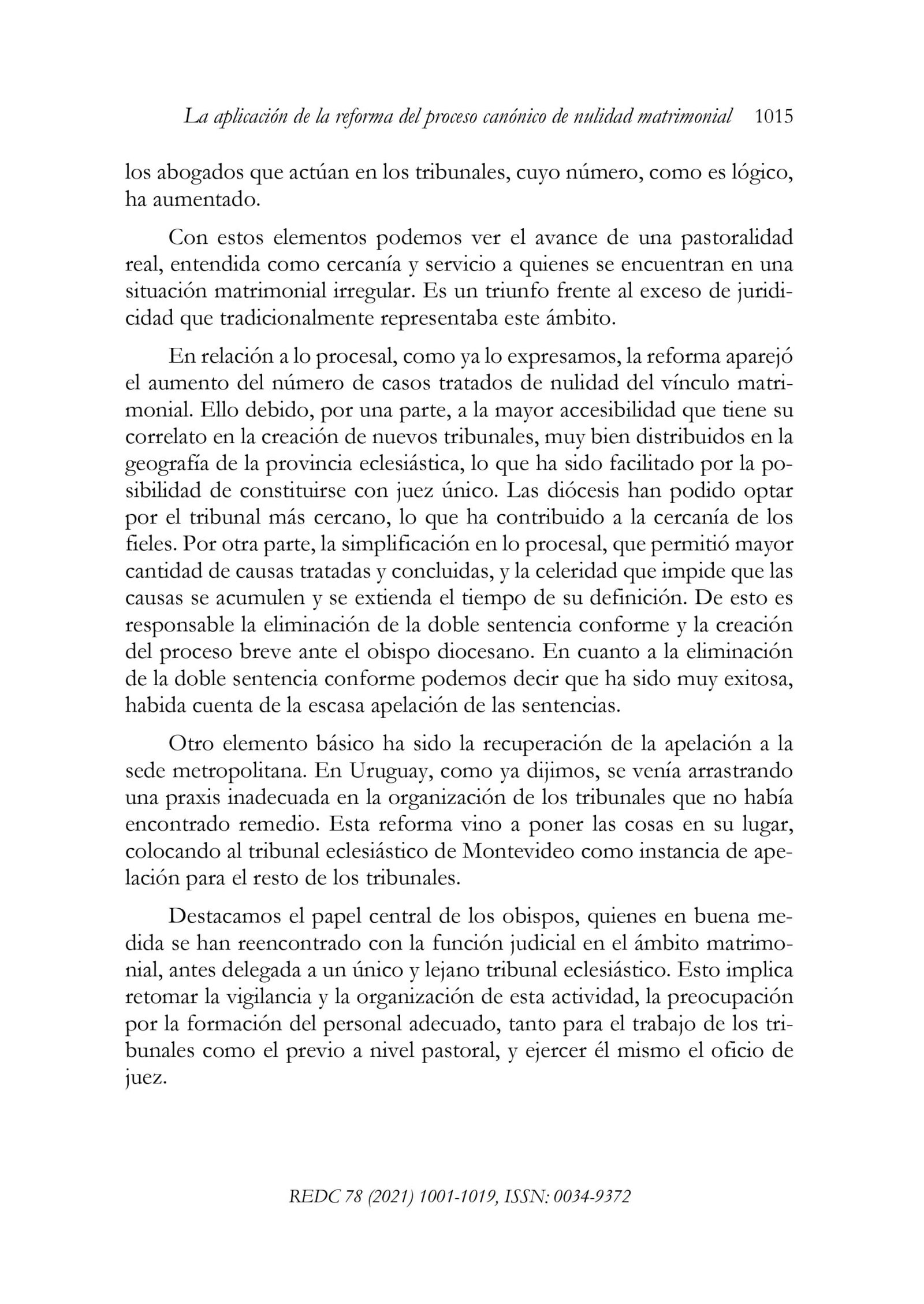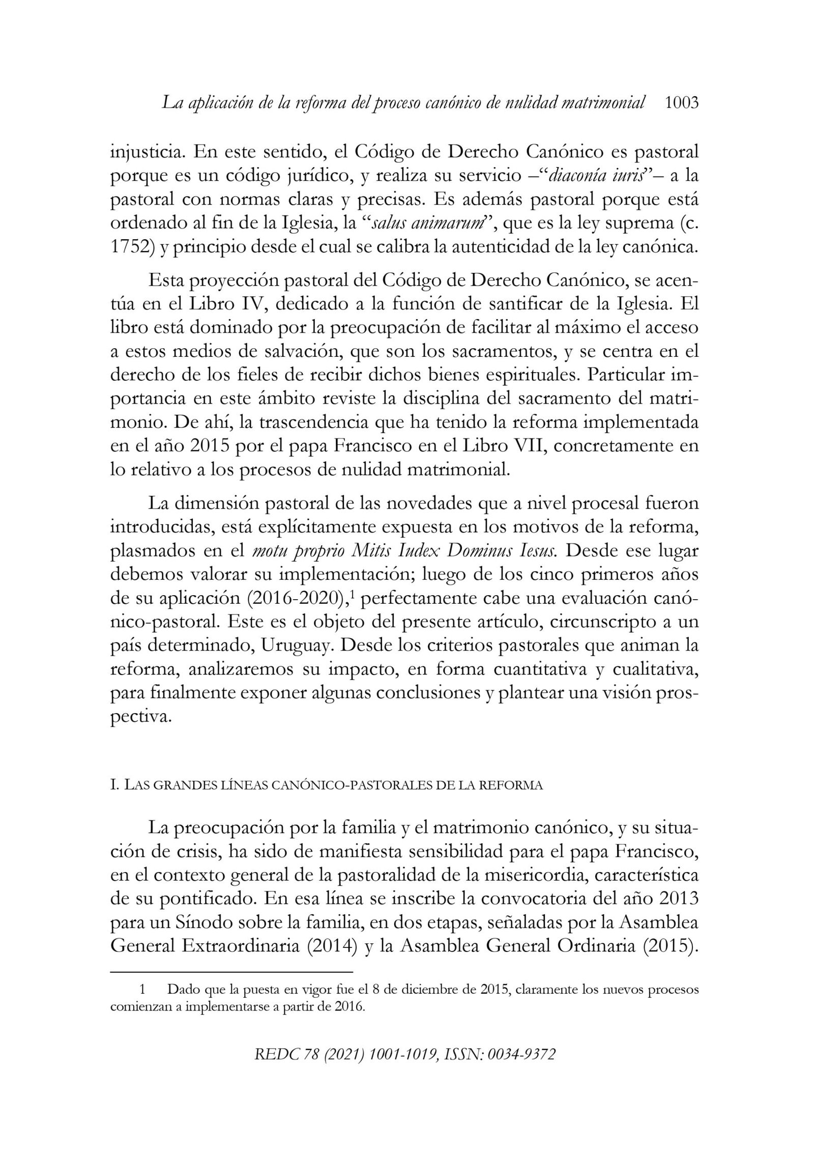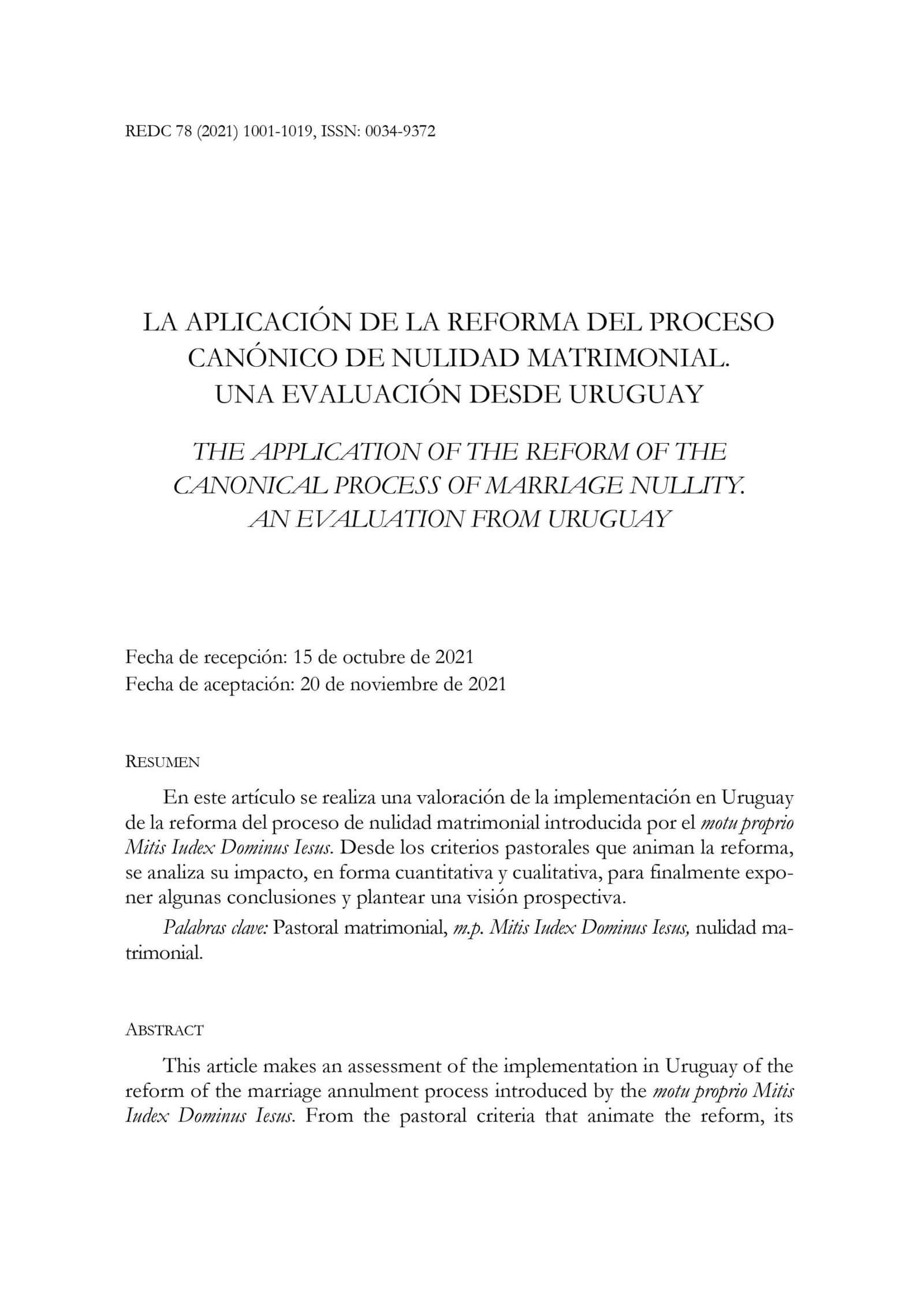 La aplicación de la reforma del proceso canónico de nulidad matrimonial. Una evaluación desde Uruguay