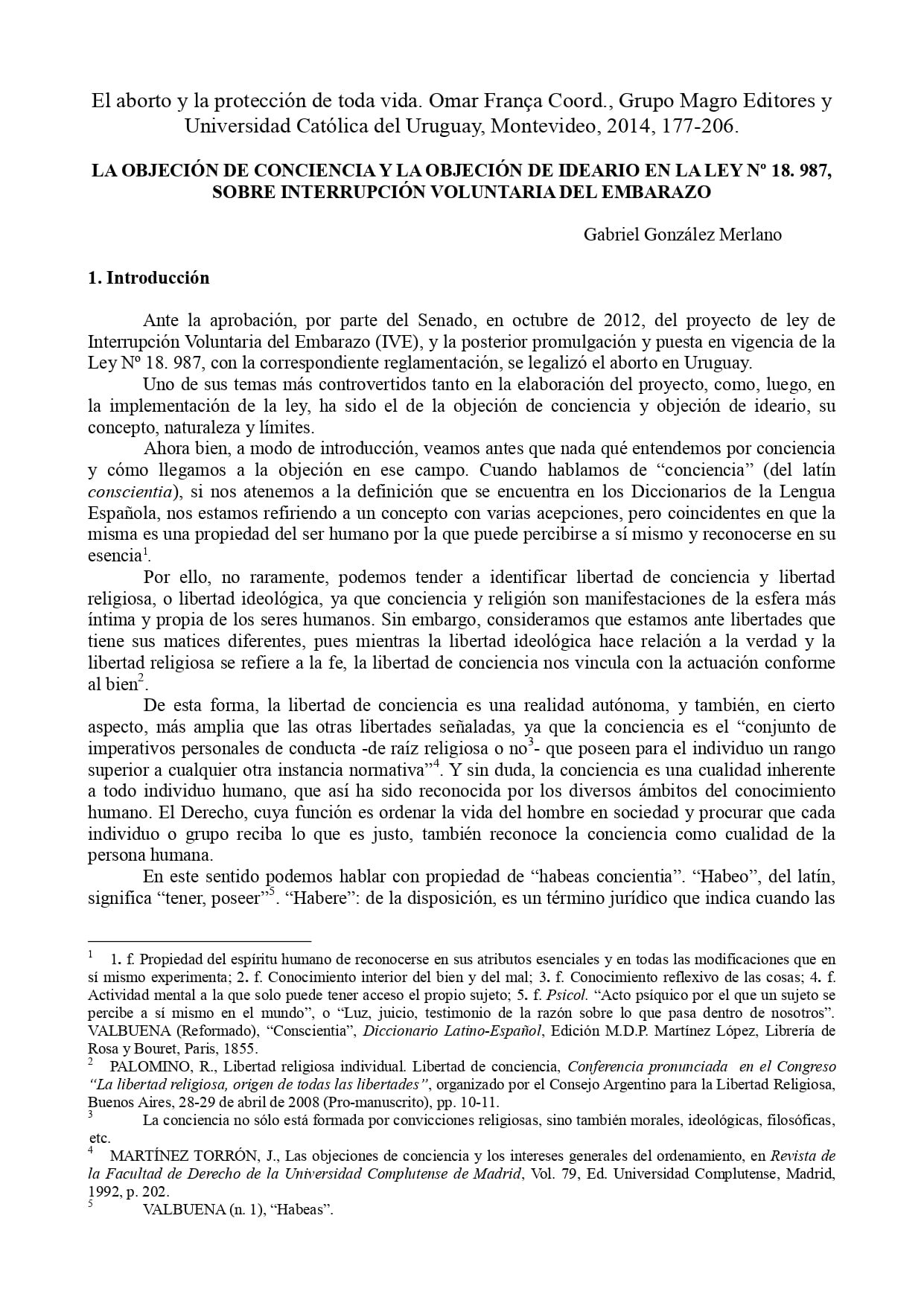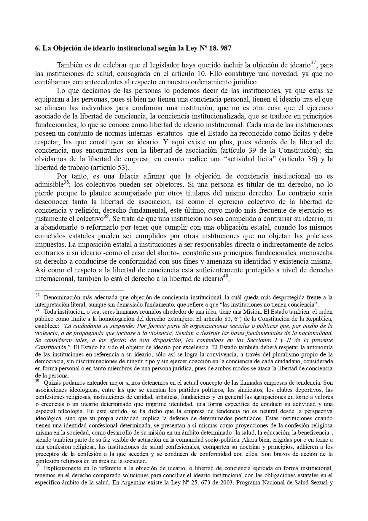 La objeción de conciencia y la objeción de ideario en la ley Nº 18. 987, sobre interrupción voluntaria del embarazo